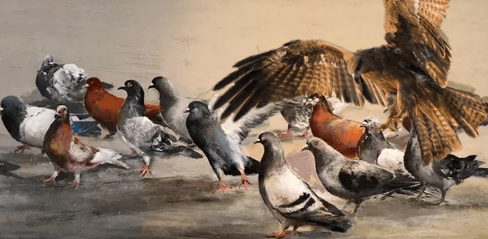 چیل اکثر اپنی میٹھی میٹھی باتوں سے کبوتروں کو لبھاتی اور انہیں حفاظت اور آزادی کا احساس دلاتی۔