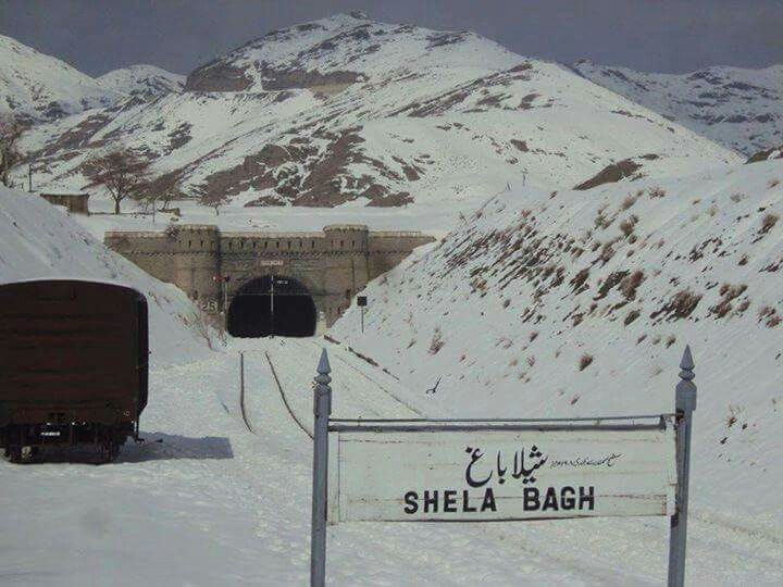 پاکستان کا خوبصورت ترین ریلوے اسٹیشن شیلا باغ، کوئٹہ سے 112 کلو میٹر دور، اس نرتکی کے نام پر ہے جس کے اعضا کے نرت بھاؤ پر بل کھاتی ہوئی ریلوے لائن کوژک ٹنل میں داخل ہوتی ہے۔ دور سے سرنگ کا دہانہ پہاڑیوں کے بیچ افق سے ابھرتے ہوئے سرخ چاند کی طرح نظر آ رہا تھا۔ پریوں کا یہ دیس خواجہ عمران پہاڑی سلسلہ کی گود میں آباد ہے۔ دو منزلہ عمارت بلوچی مٹی کے رنگ کی پیلی انیٹوں اور سرخ سیمنٹ سے بنی ہوئی تھی۔ بل کھاتا ہوا راستہ بھی انہیں دو رنگوں سے سجا ہوا تھا۔
